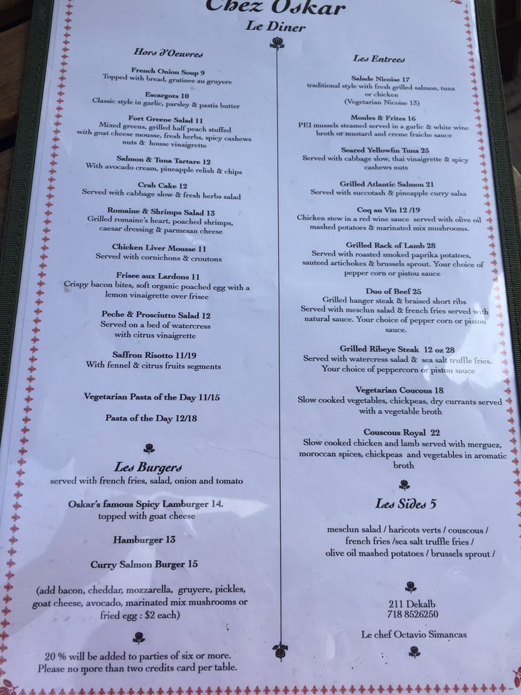 Welcome to Chez Oskar, a delightful dining destination nestled in Brooklyn’s vibrant Malcolm X Blvd. This bustling eatery offers an eclectic menu that seamlessly blends comfort and sophistication, making it perfect for brunch, dinner, or a casual night out.
